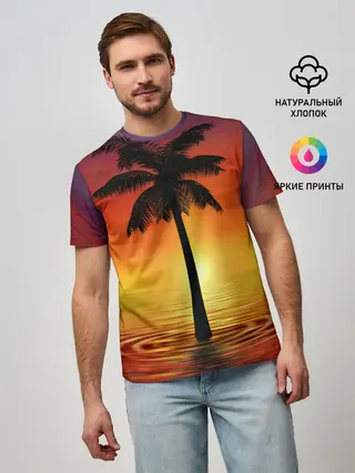 Мужская базовая футболка / ТРОПИЧЕСКИЕ ПАЛЬМЫ.