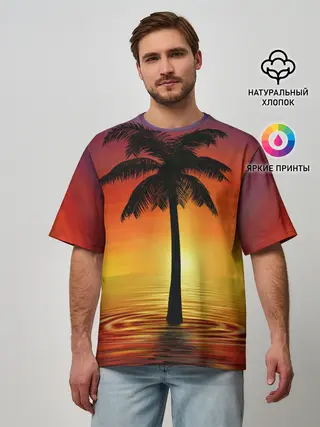 Мужская футболка оверсайз / ТРОПИЧЕСКИЕ ПАЛЬМЫ.