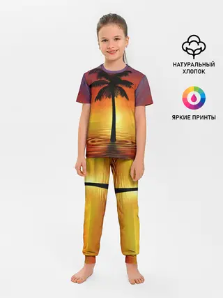 Детская пижама с брюками / ТРОПИЧЕСКИЕ ПАЛЬМЫ.