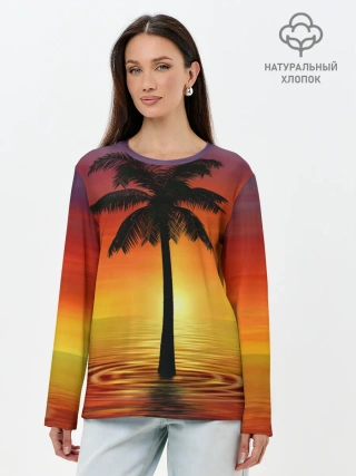 Лонгслив женский. Хлопок / ТРОПИЧЕСКИЕ ПАЛЬМЫ.