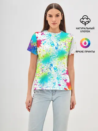 Женская базовая футболка / БРЫЗГИ НЕОНА