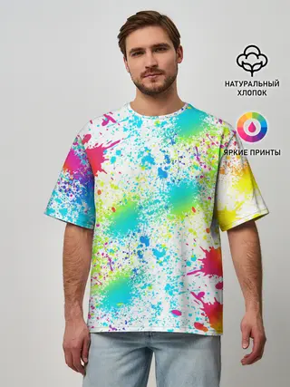 Мужская футболка оверсайз / БРЫЗГИ НЕОНА