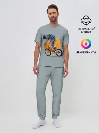 Мужская пижама с брюками / Космический велосипедист