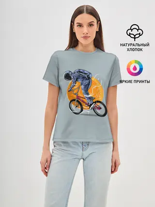 Женская футболка оверсайз / Космический велосипедист