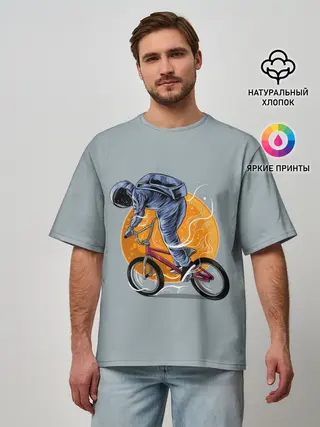 Мужская футболка оверсайз / Космический велосипедист