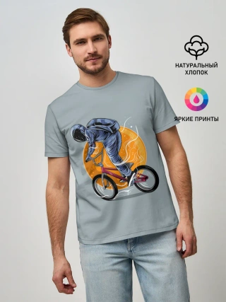 Мужская базовая футболка / Космический велосипедист