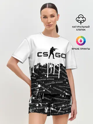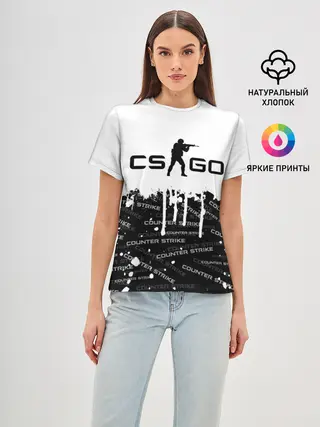 Женская футболка оверсайз / CS GO BLACK WHITE GEOMETRY