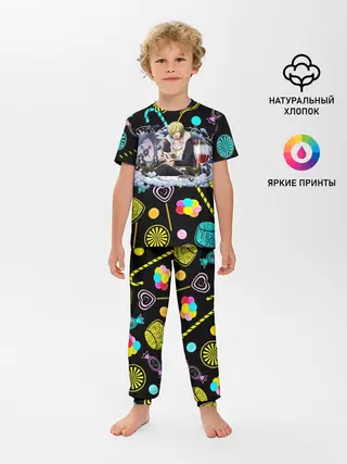 Детская пижама с брюками / Винсмок Санджи. Фон со сладостями