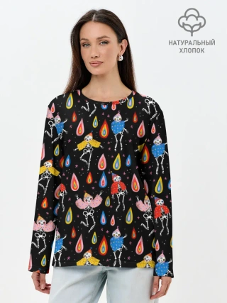 Лонгслив женский. Хлопок / Танцы скелетов