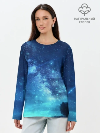 Лонгслив женский. Хлопок / Синяя Небо