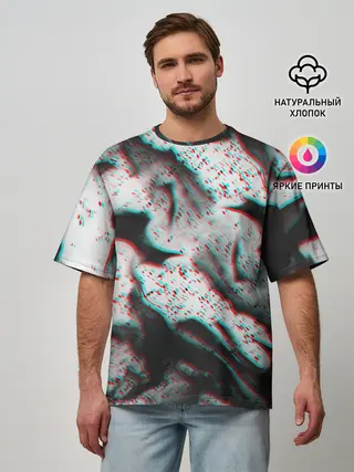 Мужская футболка оверсайз / ОГОНЬ ГЛИТЧ