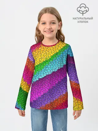 Детский лонгслив / Яркая мозаика радуга диагональ