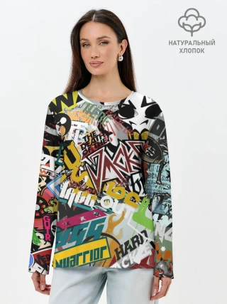 Лонгслив женский. Хлопок / Стикеры