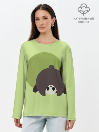 Лонгслив женский. Хлопок / Прикольная панда с бабочкой