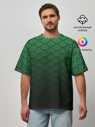 Мужская футболка оверсайз / Узор зеленая чешуя дракон