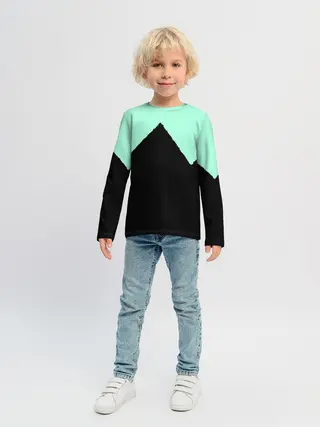 Мужской лонгслив базовый / неровные зубья черный мятный