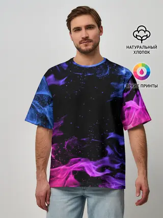 Мужская футболка оверсайз / ОГОНЬ НЕОН