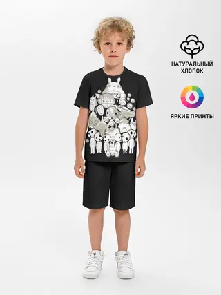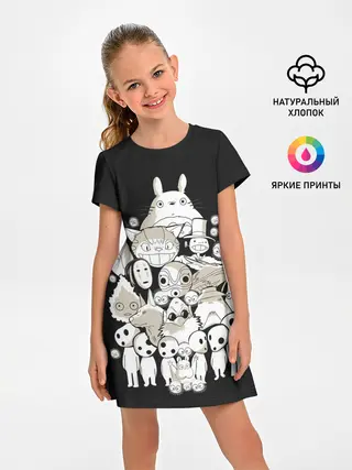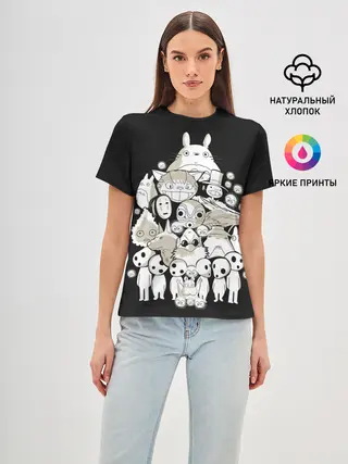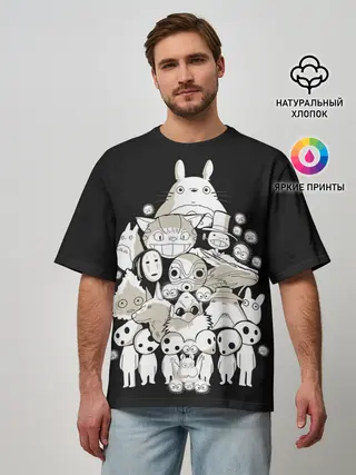 Женская футболка оверсайз / Персонажи Миядзаки паттерн