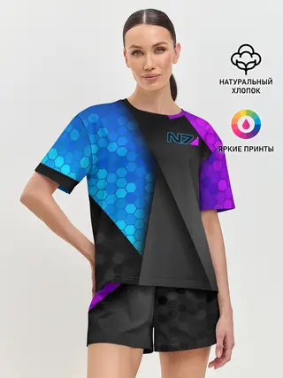 Женская футболка оверсайз / КОСТЮМ N7 | MASS EFFECT N7 | МАСС ЭФФЕКТ Н7