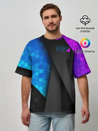 Мужская футболка оверсайз / Mass Effect N7