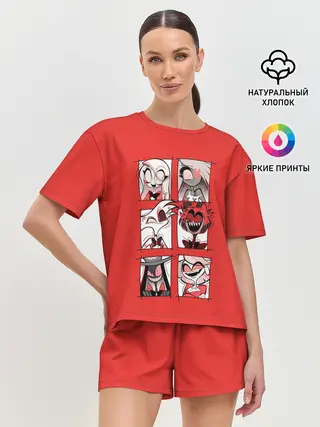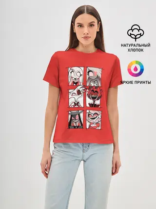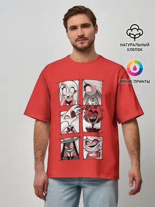 Женская футболка оверсайз / ОТЕЛЬ ХАЗБИН ПЕРСОНАЖИ МУЛЬТФИЛЬМА