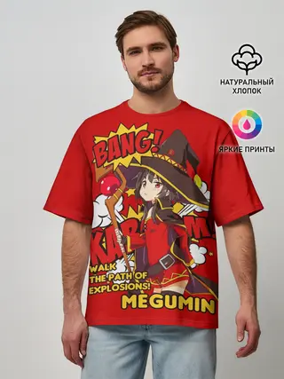 Мужская футболка оверсайз / KonoSuba. Мегумин текст