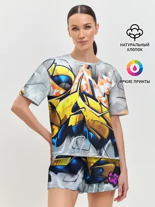 Женская футболка оверсайз / CYBERSTYLE NEON CAMOUFLAGE