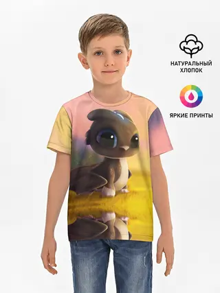 Детская базовая футболка / Дракончик на берегу озера