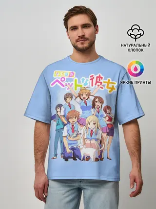 Мужская футболка оверсайз / Кошечка из Сакурасо