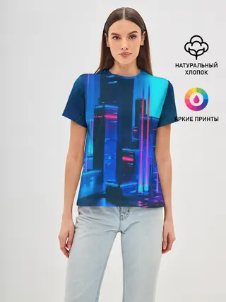 Женская базовая футболка / НОЧНОЙ ГОРОД