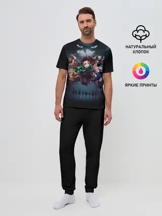 Мужская пижама с брюками / Kimetsu no Yaiba на черном