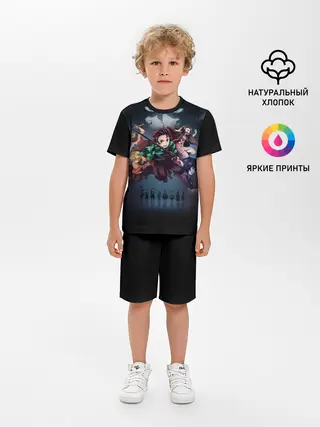 Детская пижама с шортами / Kimetsu no Yaiba на черном