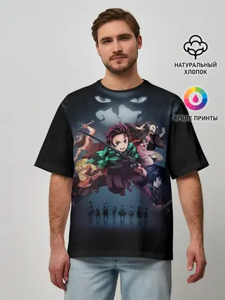 Мужская футболка оверсайз / Kimetsu no Yaiba на черном