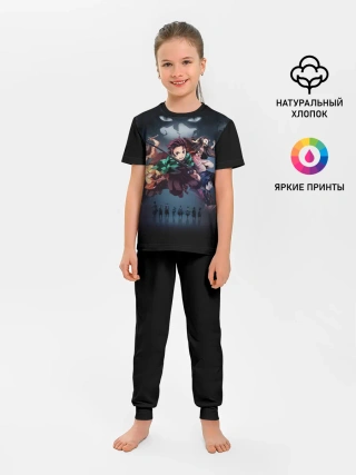 Детская пижама с брюками / Kimetsu no Yaiba на черном