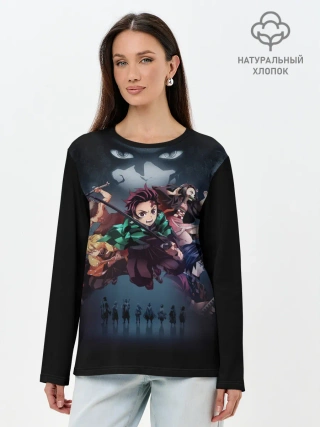 Лонгслив женский. Хлопок / Kimetsu no Yaiba на черном