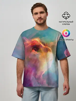 Мужская футболка оверсайз / КОСМИЧЕСКИЙ КОТ