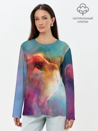 Лонгслив женский. Хлопок / КОСМИЧЕСКИЙ КОТ
