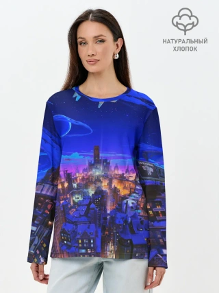 Лонгслив женский. Хлопок / Сказочный город