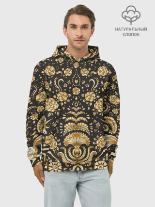 Худи мужской база хлопок / Gold & Black
