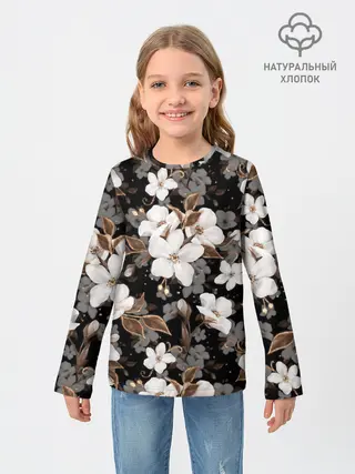 Детский лонгслив / Белые цветы