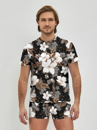 Мужские трусы с футболкой / Белые цветы