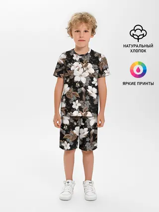 Детская пижама с шортами / Белые цветы