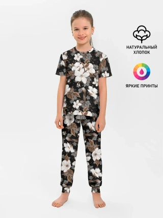 Детская пижама с брюками / Белые цветы