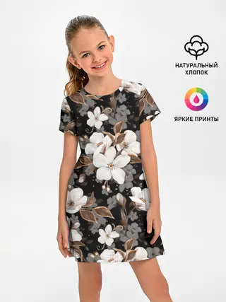 Детская базовая футболка / Белые цветы