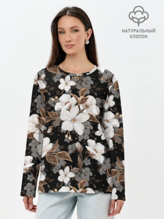 Лонгслив женский. Хлопок / Белые цветы