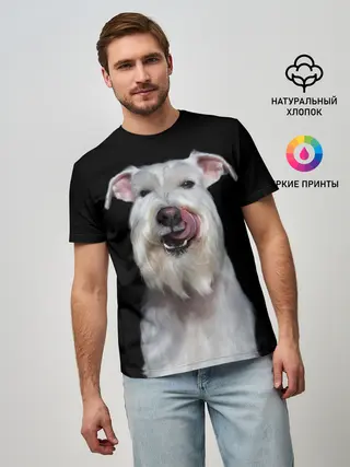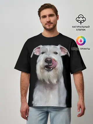 Мужская футболка оверсайз / Белый шнауцер
