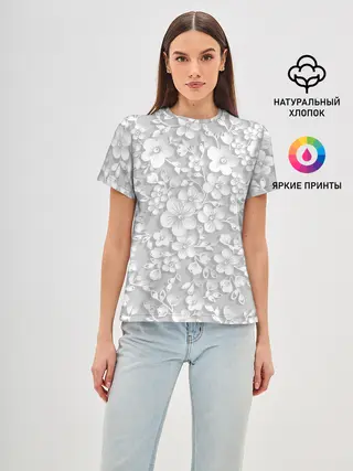 Женская футболка оверсайз / ЦВЕТОЧНЫЙ ОРНАМЕНТ