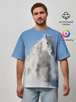 Мужская футболка оверсайз / Белый скакун