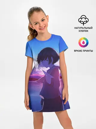 Женская футболка оверсайз / малышка чиби и цыпленок