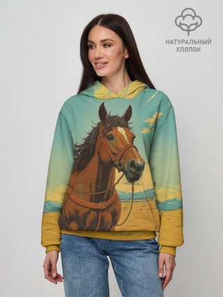 Худи женский база хлопок / Loshad_v_pustine
